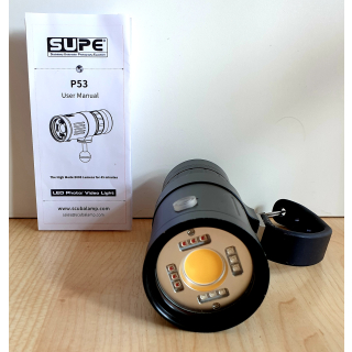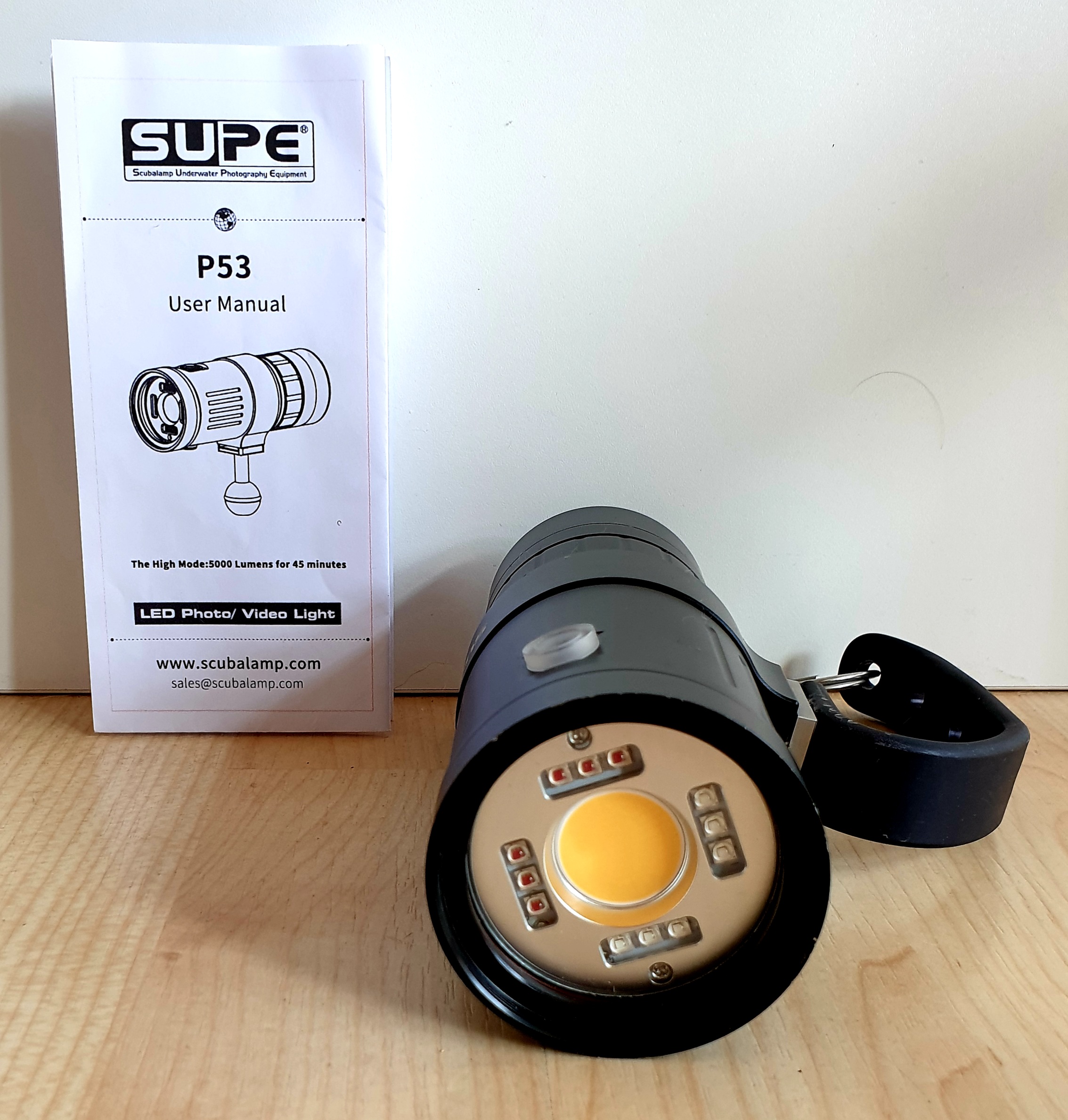phare de plongée SUPER P53 5000 lumens , vendue avec housse, chargeur, poignée et boucle porte lampe.